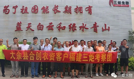 近日,江西大余縣合創(chuàng)農(nóng)資組織種植戶一行10余人來到“三炬生物”南靖生產(chǎn)基地參觀考察,了解新三炬企業(yè)發(fā)展、產(chǎn)品生產(chǎn)及應(yīng)用效果等情況,進(jìn)一步提升種植戶對新三炬的認(rèn)識,增強(qiáng)對新三炬產(chǎn)品、服務(wù)的信賴。