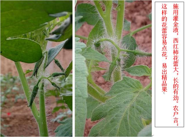 由于今年氣候異常,天氣忽冷忽熱,西紅柿普遍開花少而小,但用三炬灌金液的西紅柿花蕾大,開花旺盛,容易點(diǎn)花。