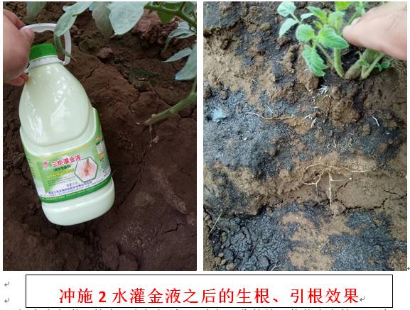 三炬灌金液最直觀的效果就是生根、引根特點(diǎn)突出,下面是我在9.10號回訪的另一位農(nóng)戶,兩水灌金液之后的生根引根效果圖: