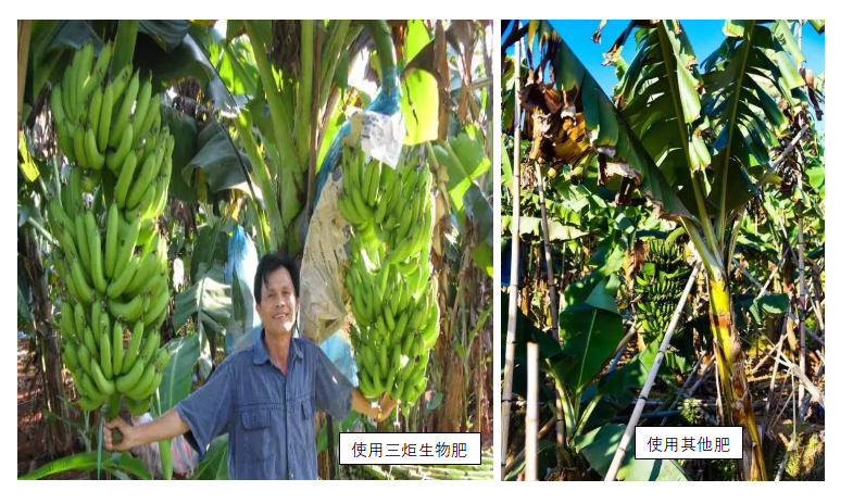 連續(xù)十年使用“三炬”生物肥。這里是香蕉黃葉病的重災(zāi)區(qū),老邱蕉園周圍的很多蕉地都有黃葉病,但他的蕉園目前為止還沒發(fā)現(xiàn)一株病株。而且用了“三炬”生物肥的蕉,好保葉,到砍蕉時(shí)還有健康的葉片7-8張以上;香蕉品質(zhì)好,賣價(jià)比他人的高2-3毛錢一市斤。