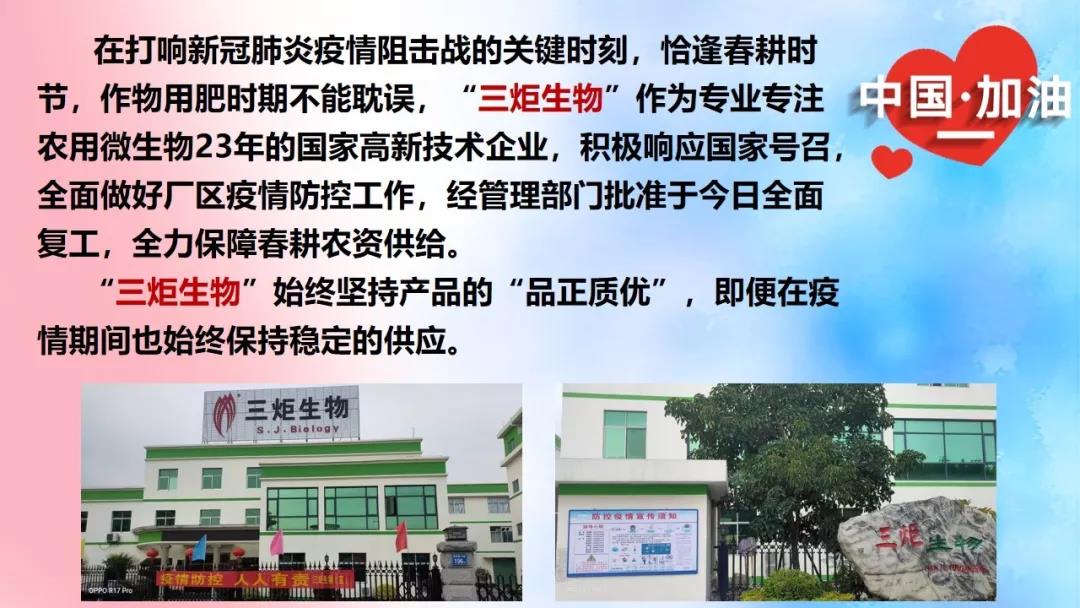 “三炬生物”積極響應(yīng)國家號召“抗疫情 保春耕”,今日全面復(fù)工!