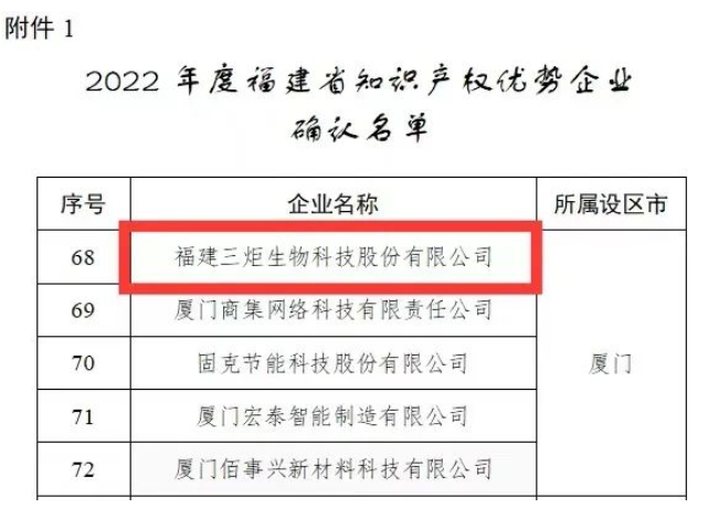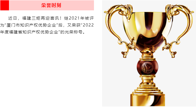 【喜訊】福建三炬榮獲“2022年度福建省知識產(chǎn)權(quán)優(yōu)勢企業(yè)”!
