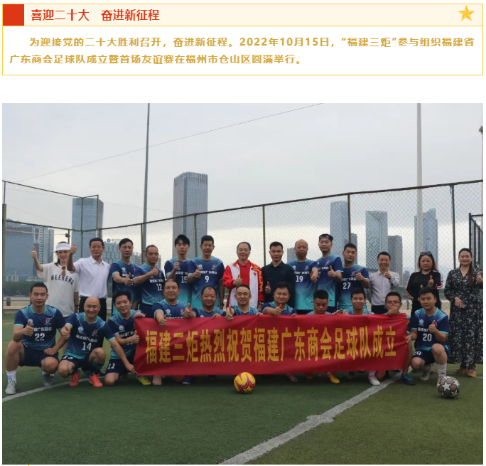 【喜迎二十大 奮進(jìn)新征程】“福建三炬”參與組織福建省廣東商會足球隊成立暨首場友誼賽圓滿舉行!