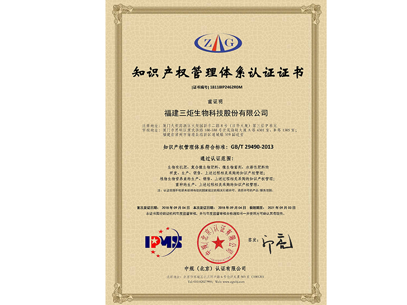 知識(shí)產(chǎn)權(quán)管理體系認(rèn)證證書