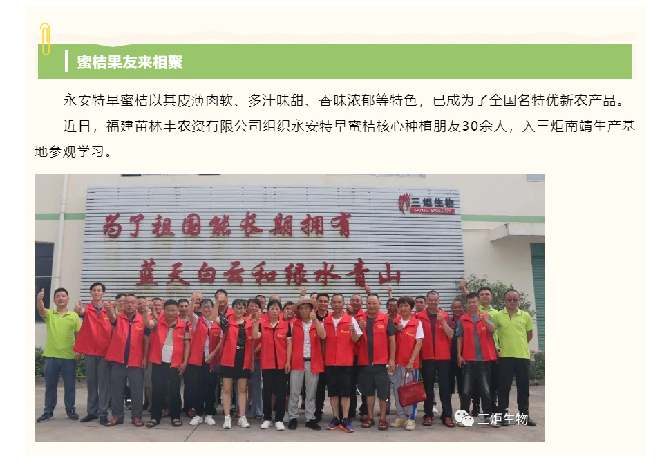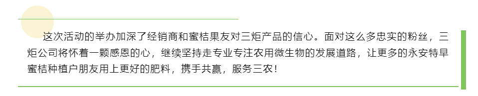 讓更多的永安特早蜜桔種植戶朋友用上更好的肥料,攜手共贏,服務(wù)三農(nóng)!